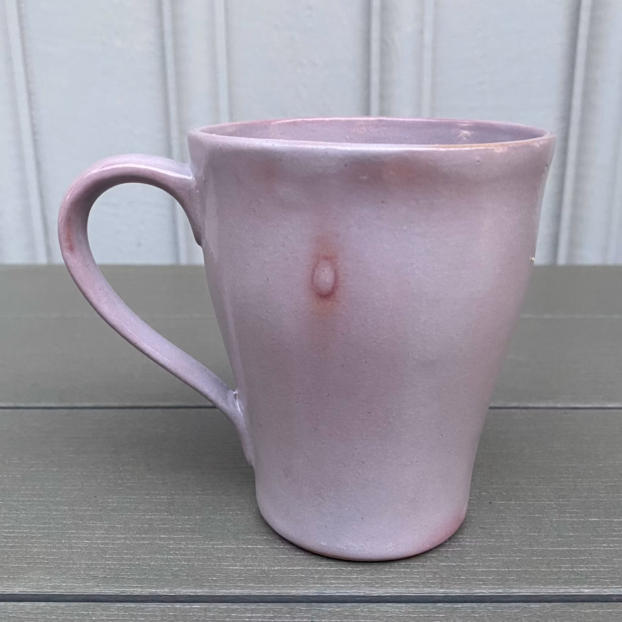 Lila kopp med charm – unik och lite extra personlig Den här vackra lila koppen kanske inte är helt perfekt i formen, men just det gör den ännu mer älskvärd. Med sitt något lägre pris är den ett fynd för dig som gillar handgjord keramik med karaktär.