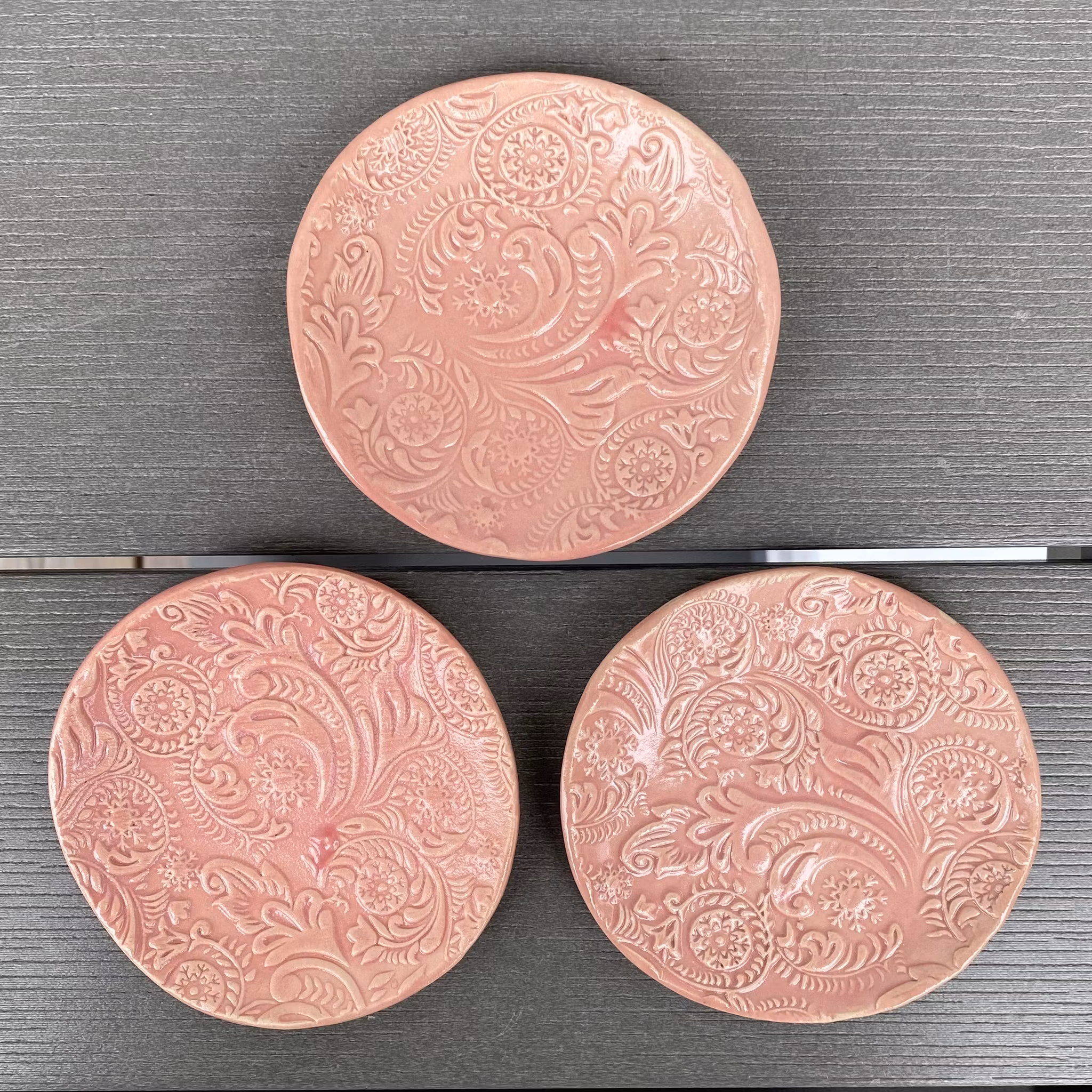 Gjorda på stengodslera och går därför att använda i ugn, mikro och diskmaskin.