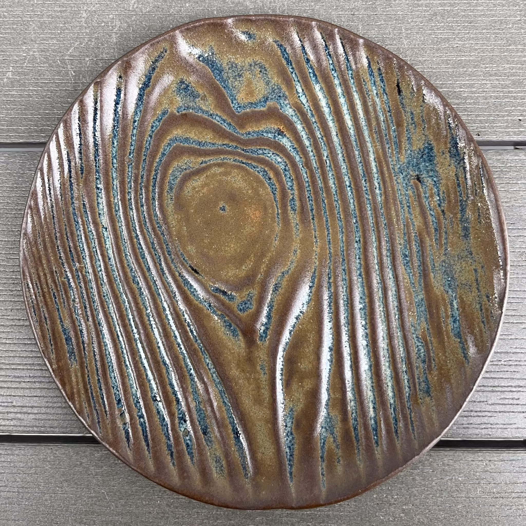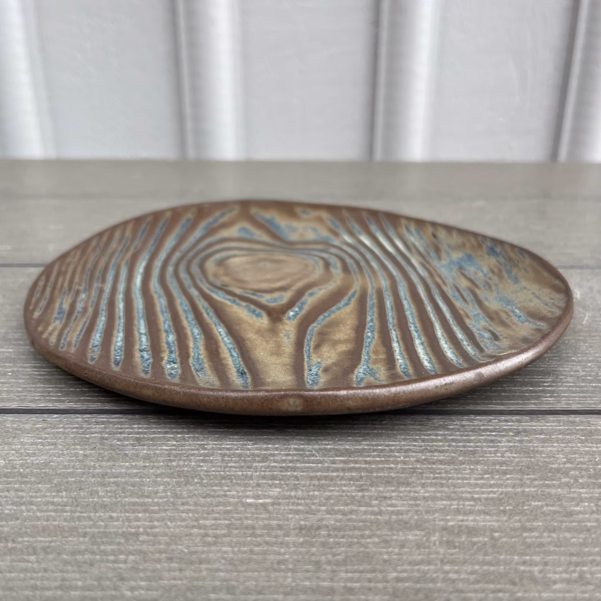 Upptäck skönheten i vårt handgjorda, unika uppläggningsfat – en perfekt fusion av konst och funktionalitet. Tillverkat av brun lera. Den fantastiska glasyren framhäver trä mönstret, vilket ger fatet en oemotståndlig karaktär och charm.