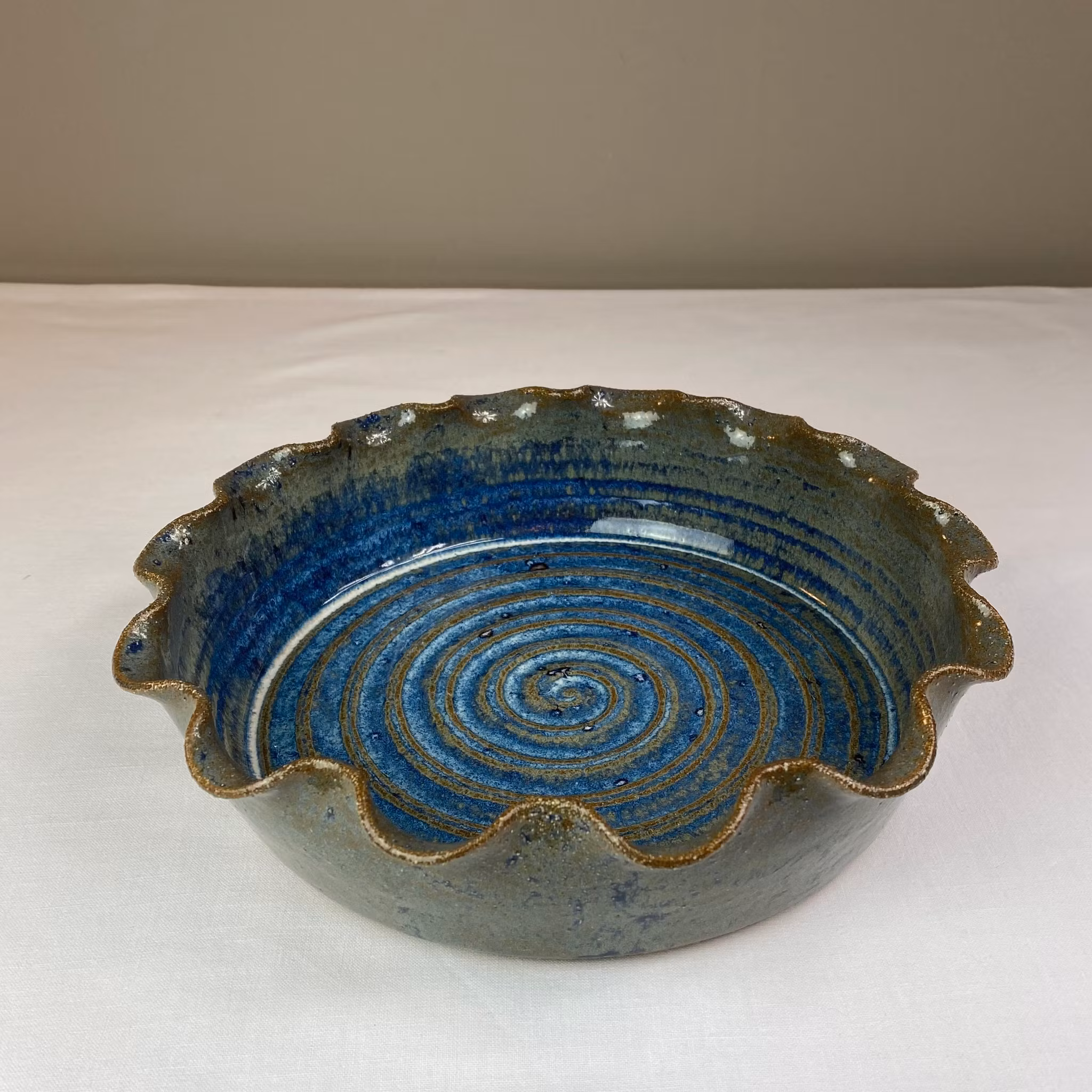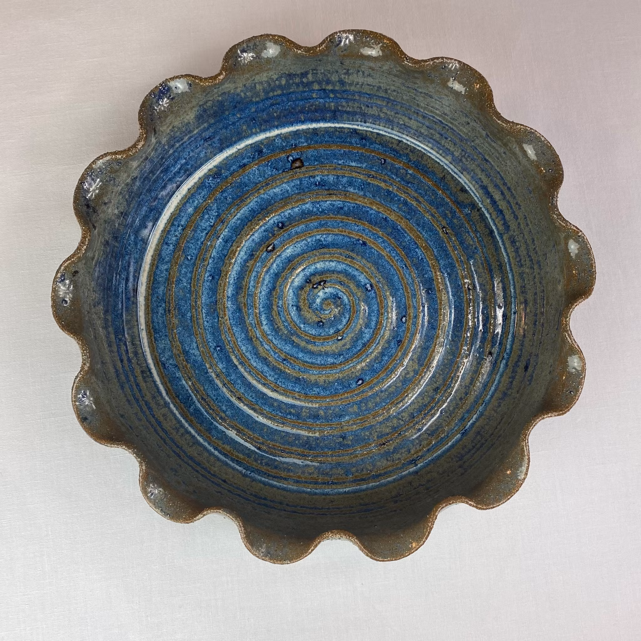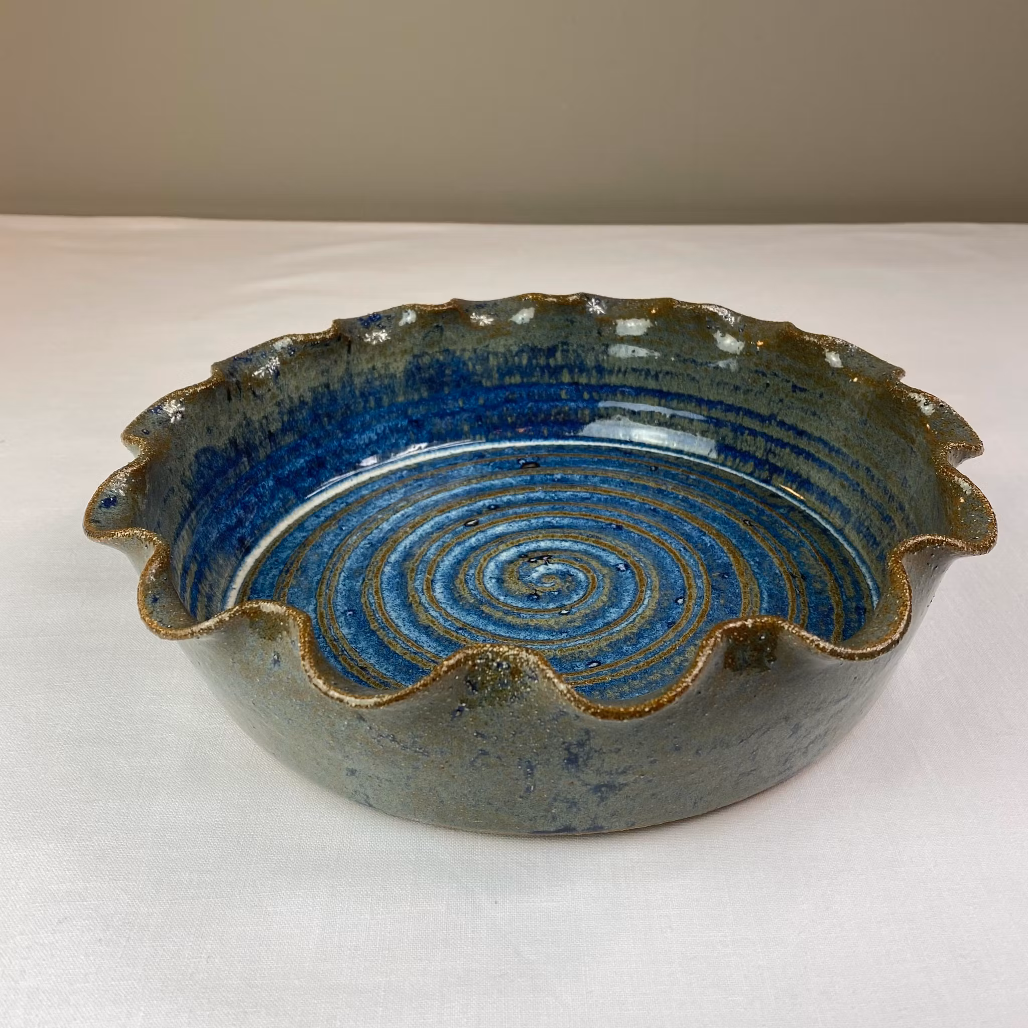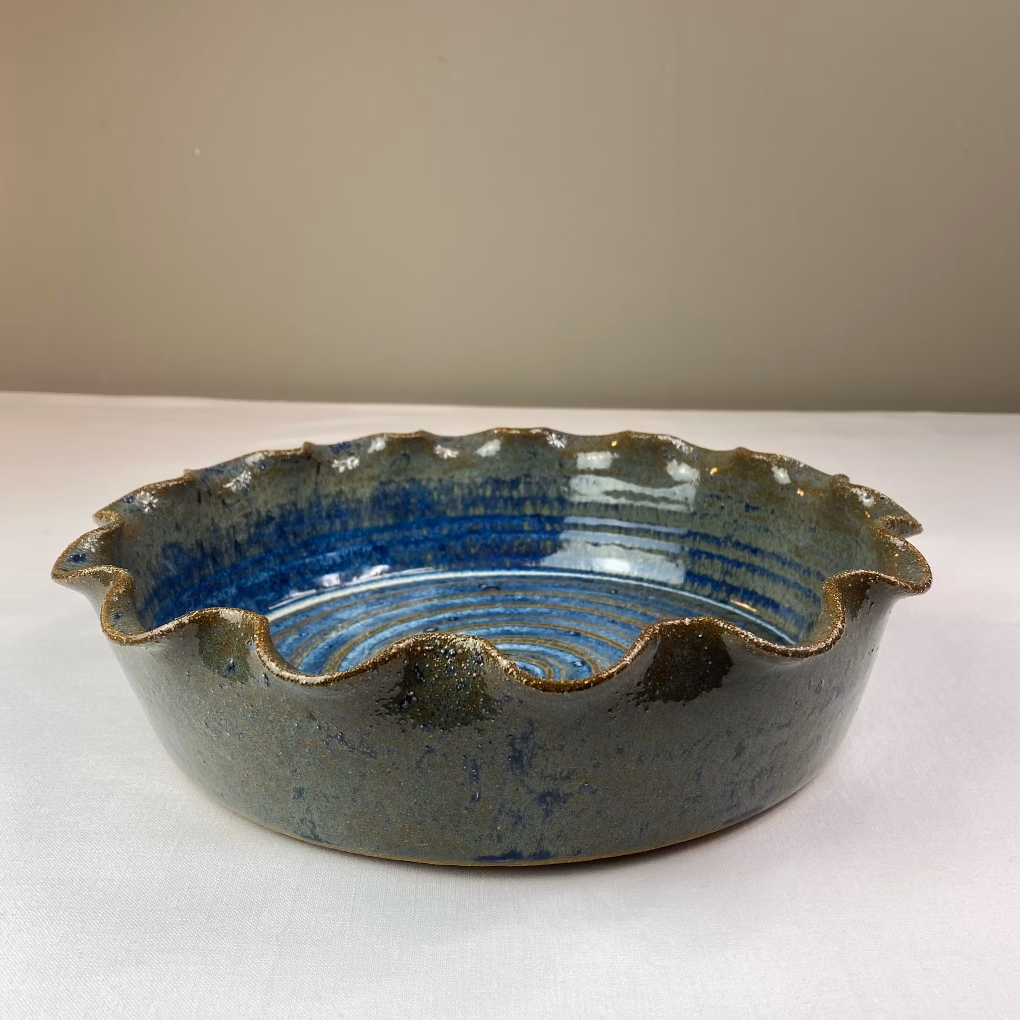 Stor handgjord ugnsform i keramik med volangkant