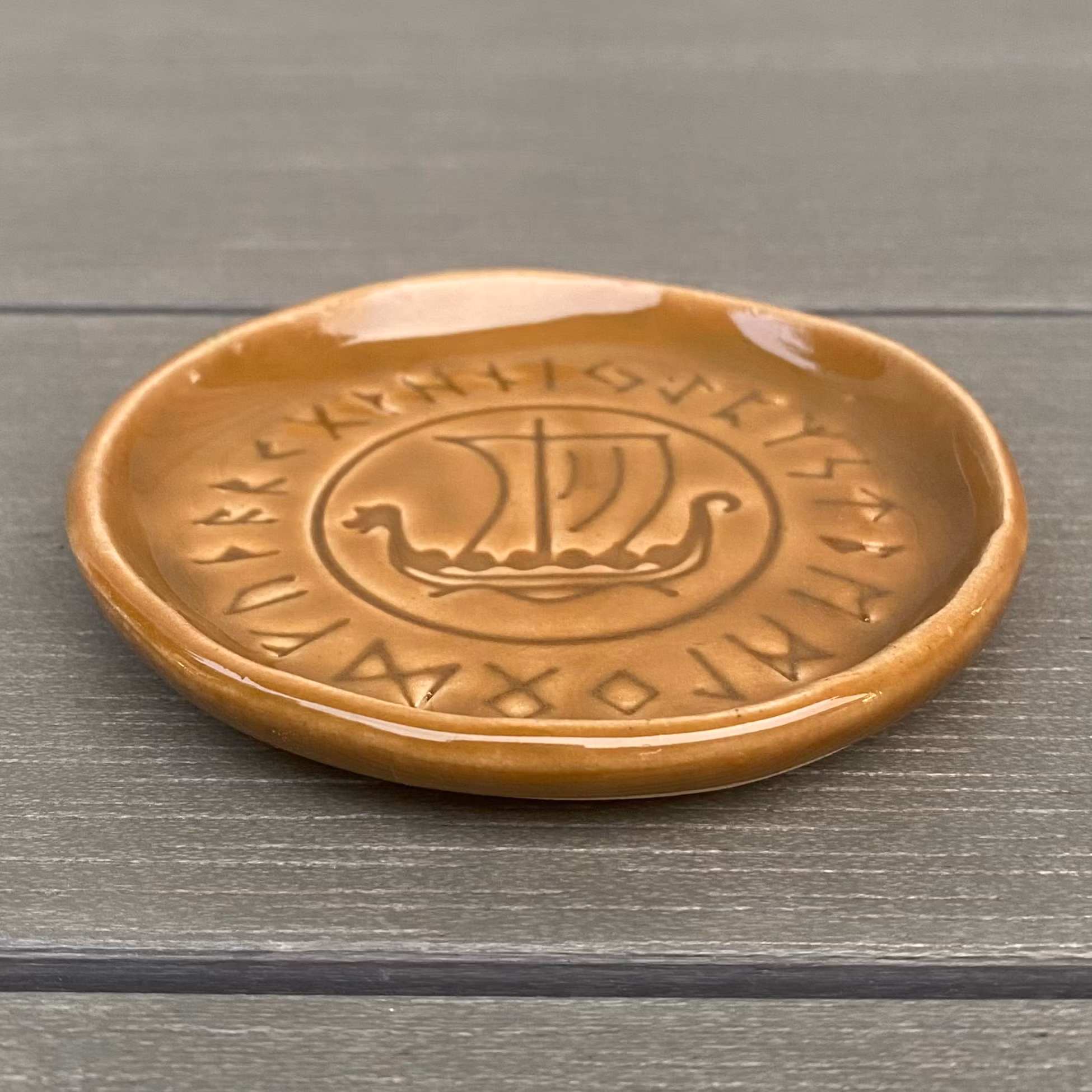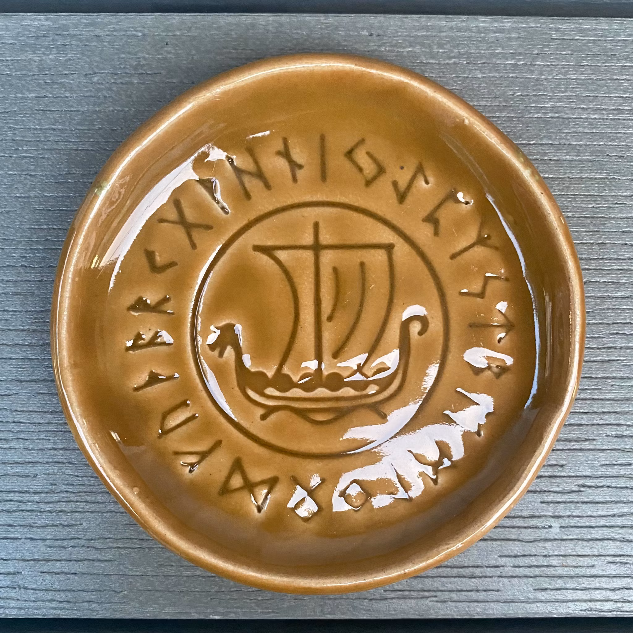 Det lilla fatet med vikingamönster är en perfekt kombination av funktion och estetik. Det är inte bara en vacker dekoration på bordet, utan också en praktisk lösning för att placera din tepåse eller en liten godbit till kaffet. Med sin unika design som hyllar den skandinaviska kulturen, ger det en känsla av historia och tradition.