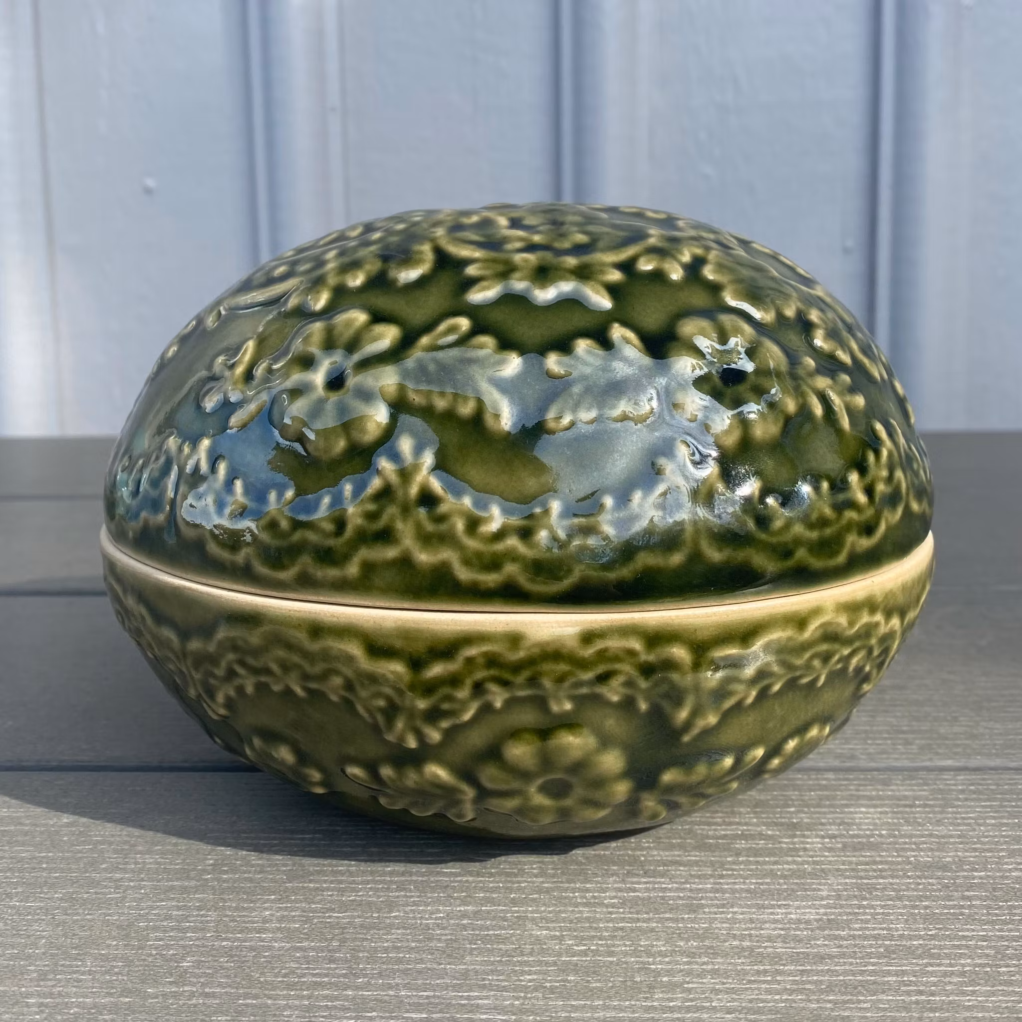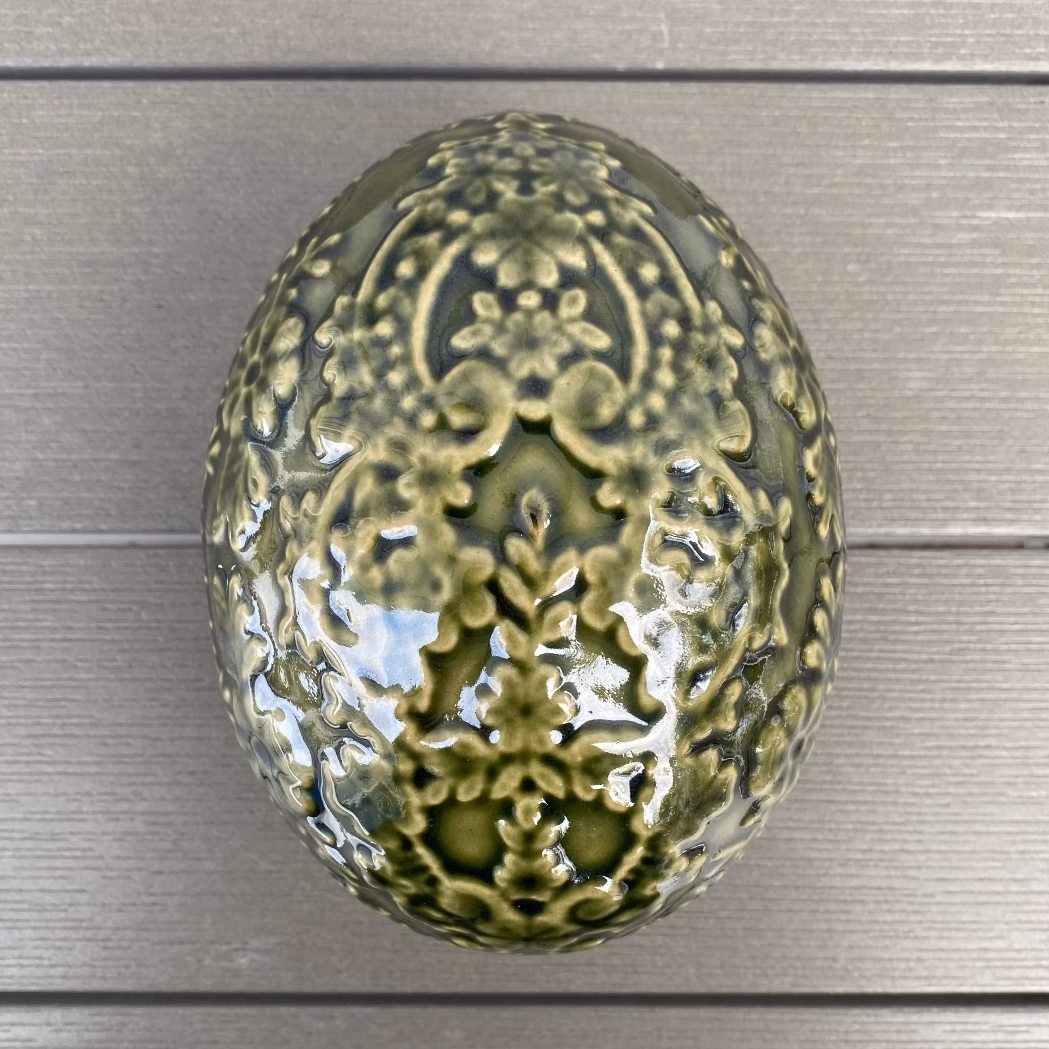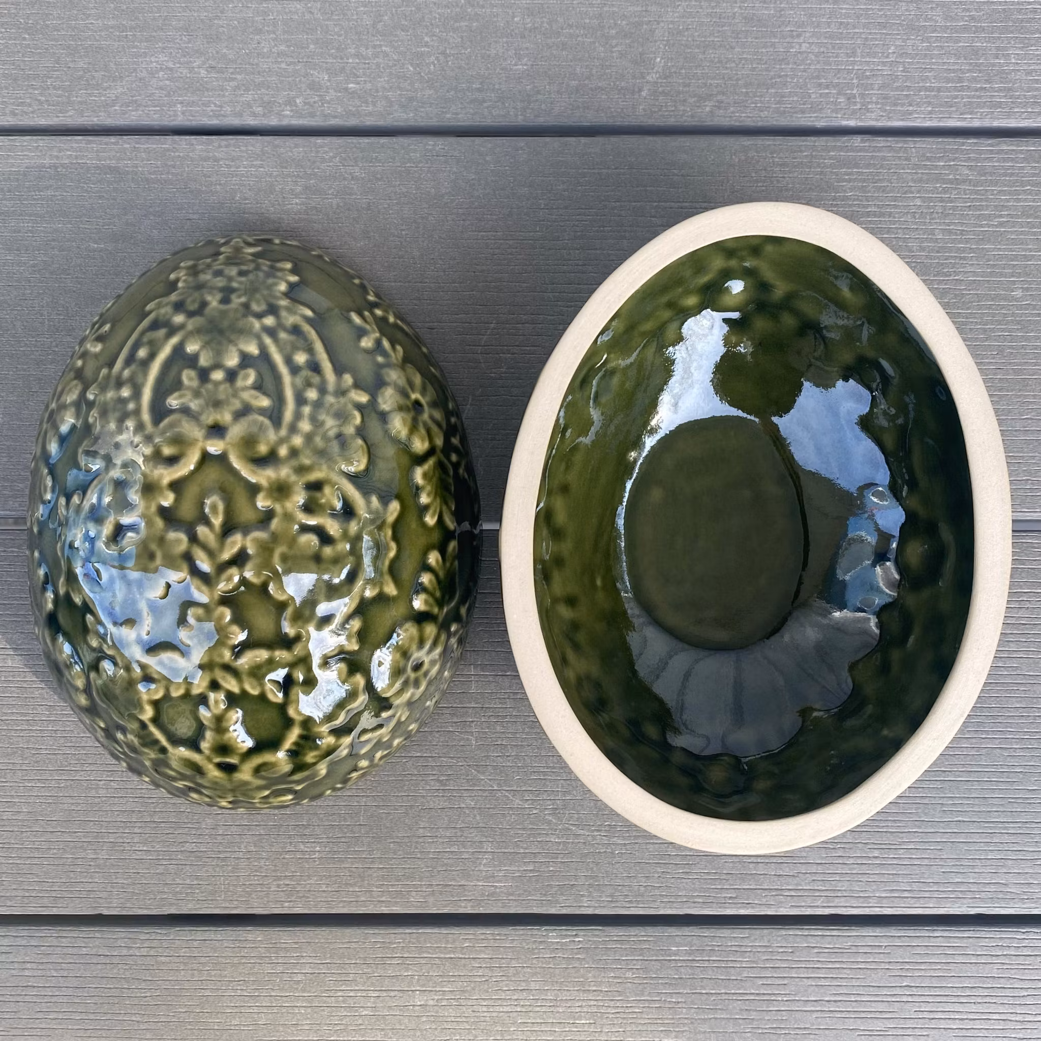 Den här handgjorda godisskålen i form av ett påskägg är både dekorativ och funktionell. Perfekt att ha på soffbordet under påskens myskvällar, fylld med godis, nötter eller små överraskningar. Också en fin påskpresent till någon du tycker om.