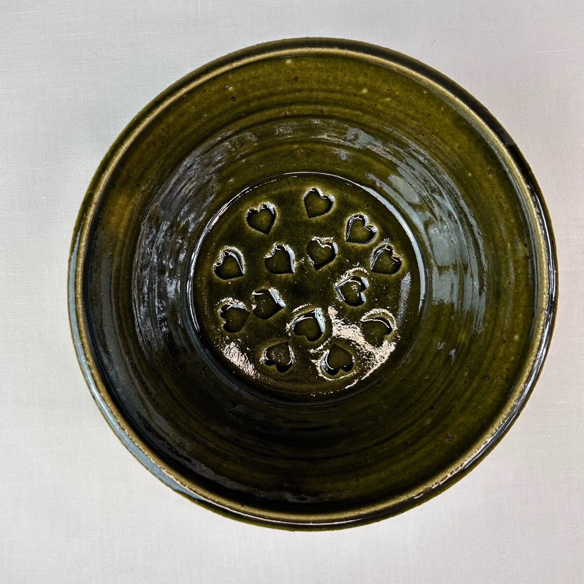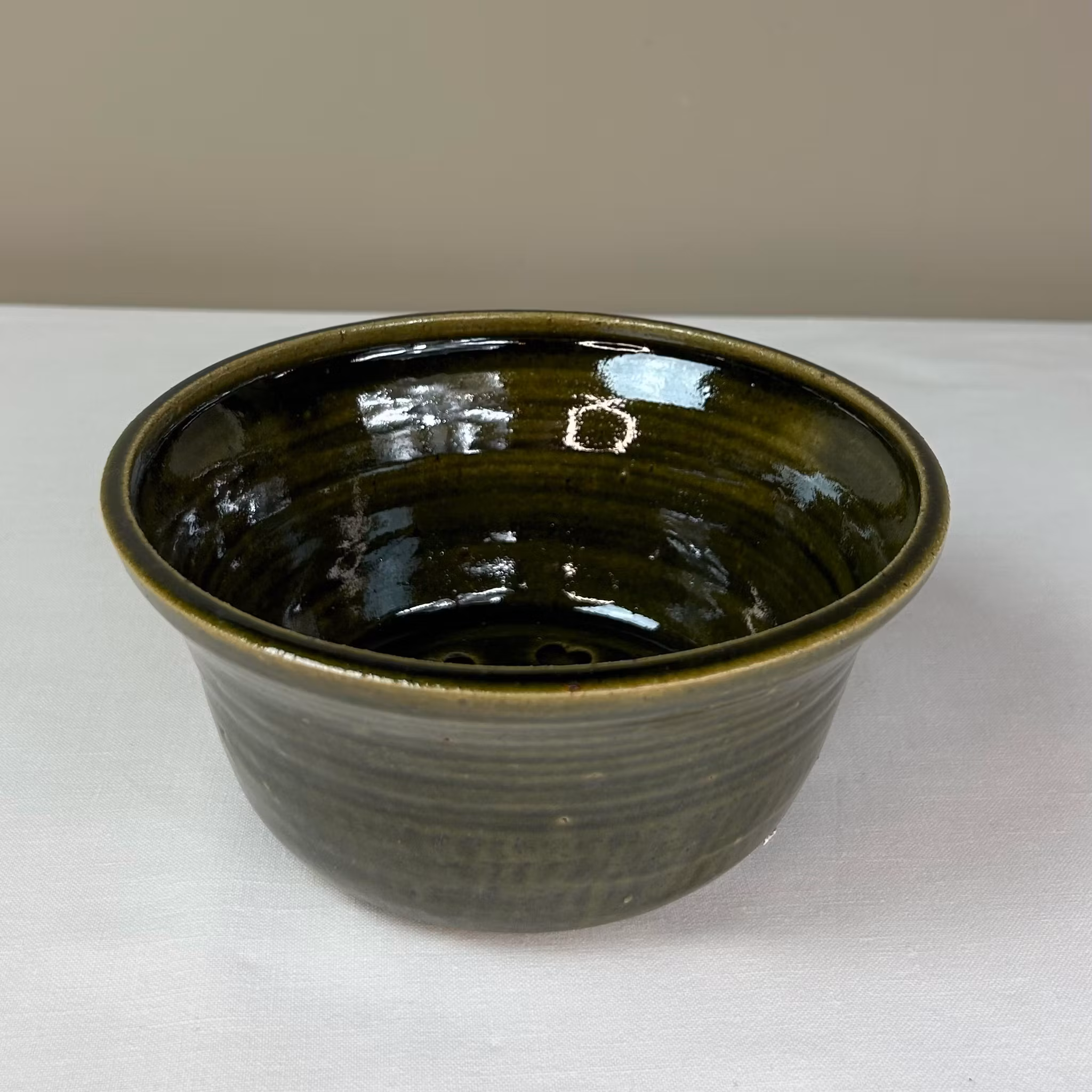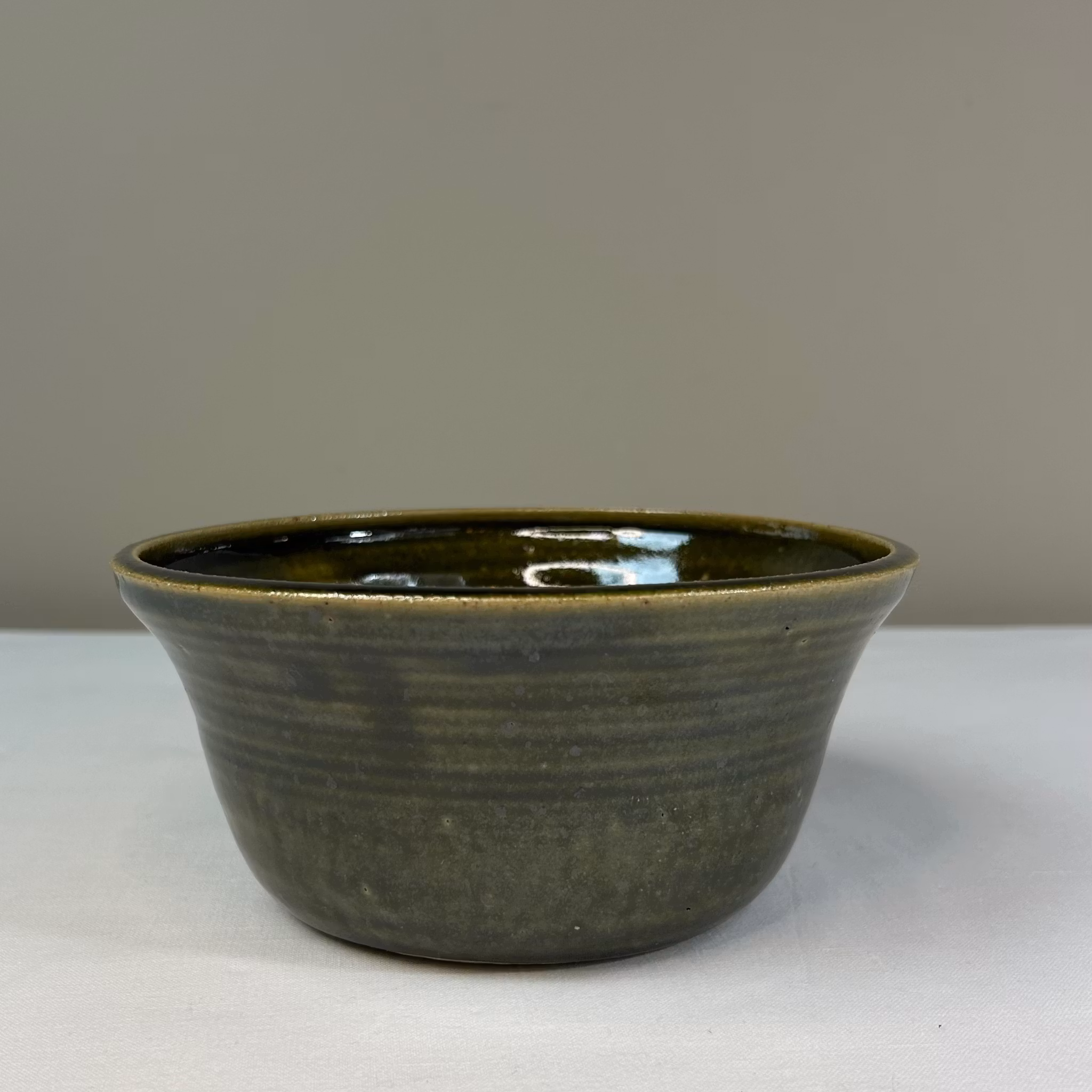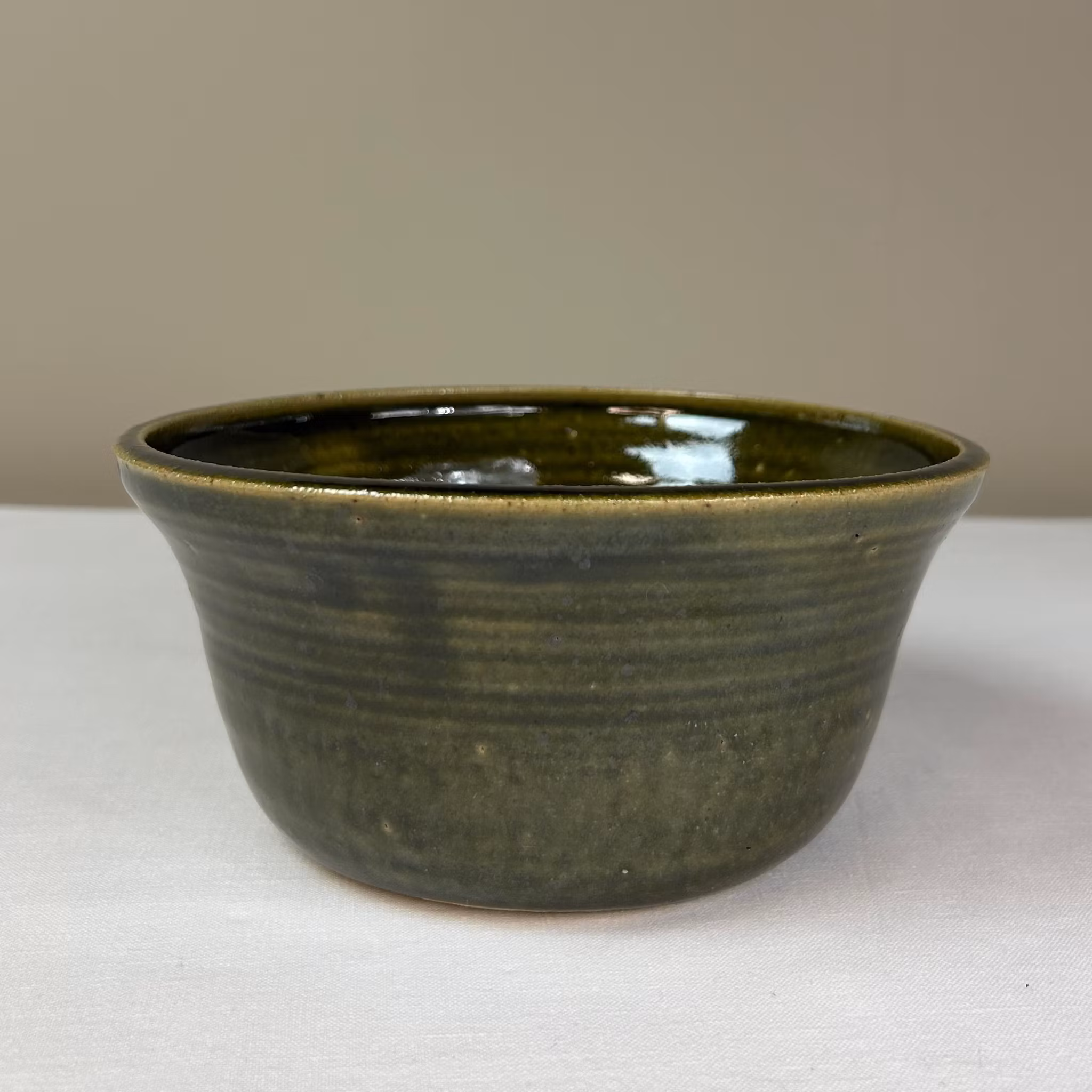 Denna mjukt rundade skål förenar tidlös form med genuint hantverk. Den gröna glasyr på lava fläckig lera ger ett rustikt och levande uttryck som lyfter både dukning och innehåll. Skålen är handgjord i brun stengods, vilket innebär naturliga variationer som gör varje exemplar unikt.