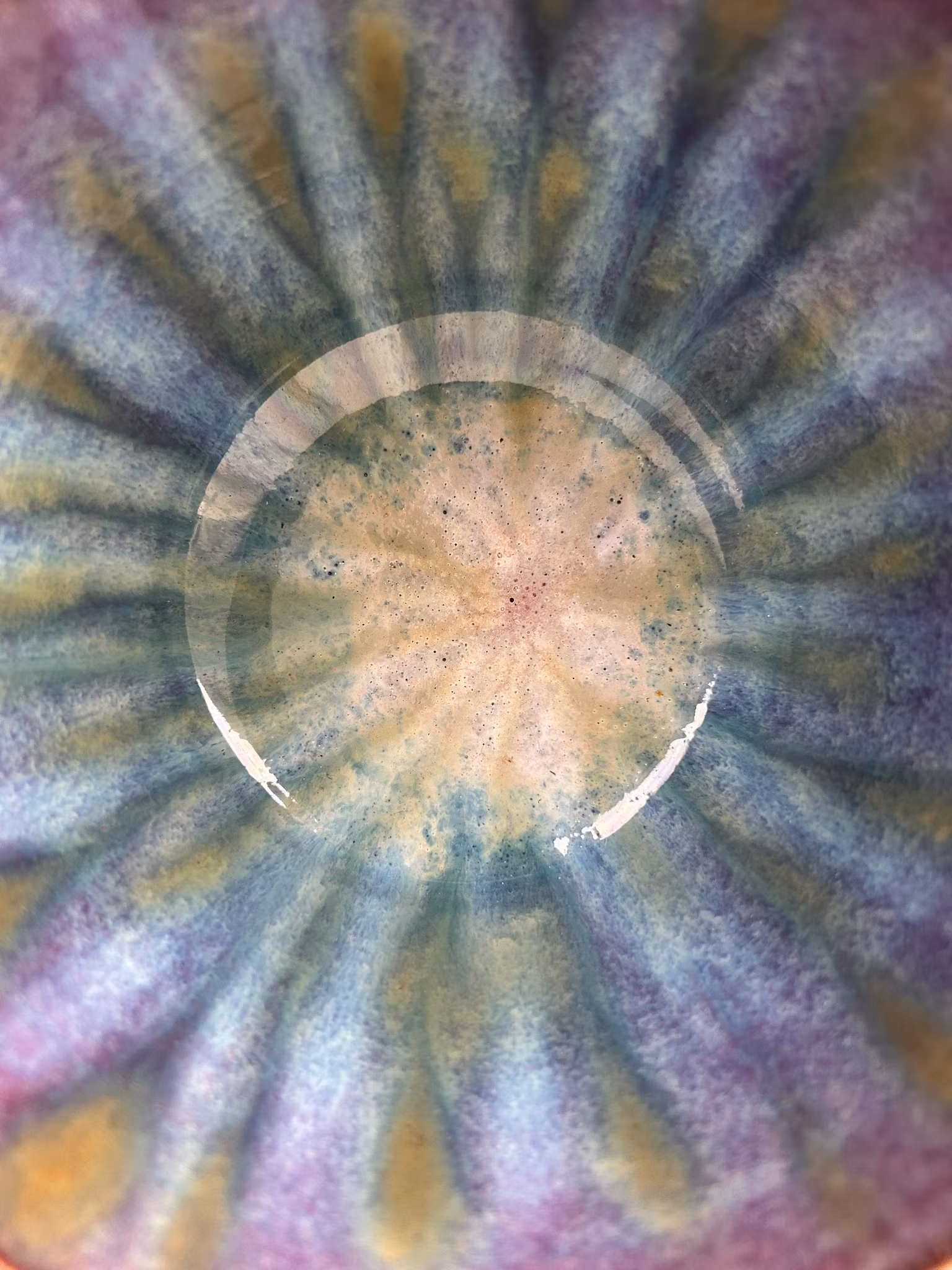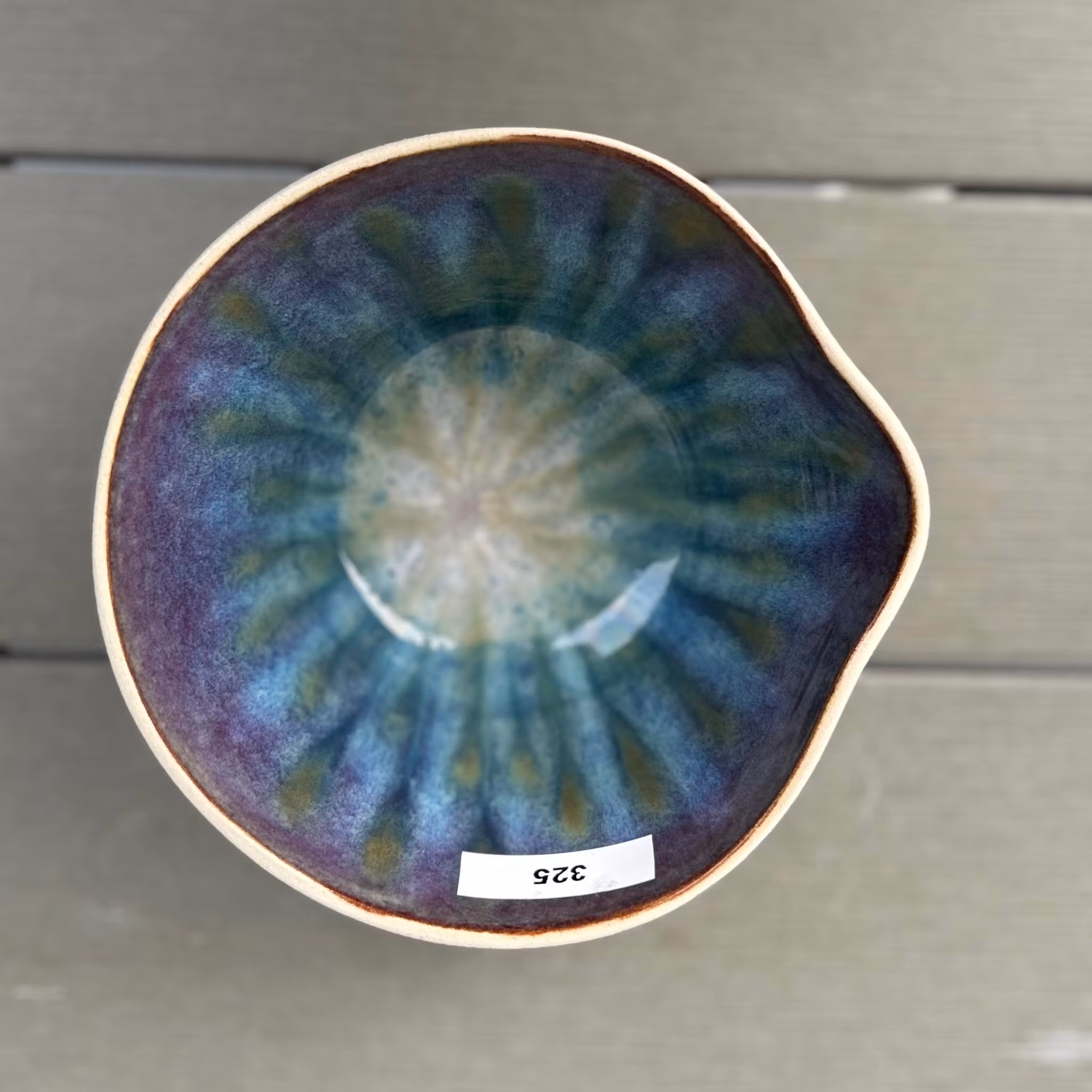 Insidan är handmålad med flera lager glasyr i olika nyanser, vilket skapar ett levande och uttrycksfullt mönster. Eftersom skålen endast finns i ett exemplar får du ett helt unikt föremål som inte går att hitta någon annanstans.